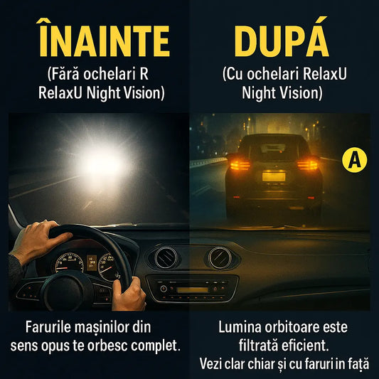 Ochelari Condus Vedere nocturna RelaxU ©, Vizibilitate si siguranta sporita