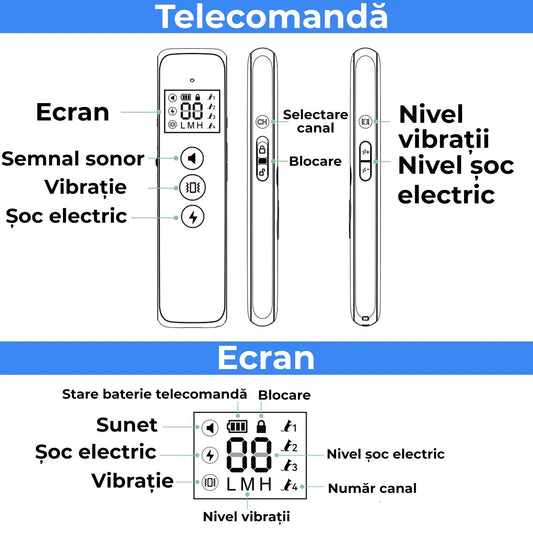 Zgarda electrica cu telecomanda RelaxU© pentru dresajul cainilor Engros, ton de avertizare, vibratii si soc static perfect pentru vanatoare sau antrenamente, rezistenta apa si praf, raza de actiune 487m, incarcator magnetic, curea ajustabila 62cm