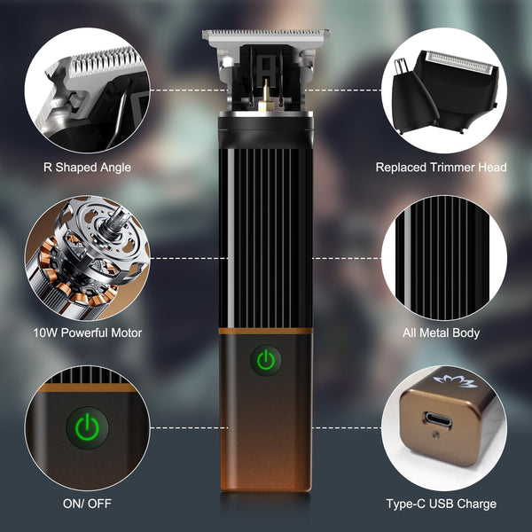 Kitul include un trimmer T-blade, un trimmer pentru nas și urechi, și un aparat de ras electric, perfect pentru îngrijirea completă acasă.